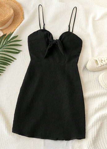 Женское повседневное праздничное платье с завязывающимся бантом ремешком, вырезом на тонких бретельках и длиной мини.