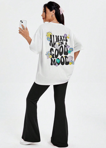 Женский свободный свитер с мультяшным и буквенным узором, и заниженными плечами.