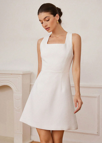 Мини-платье – Aveloria Rosie. Это минималистичное платье с квадратным вырезом и высокой талией. Подходит для свиданий и особых случаев. Платье застегивается на молнию. Оно изготовлено из неэластичной твидовой ткани с расклешенным подолом. Классический крой.