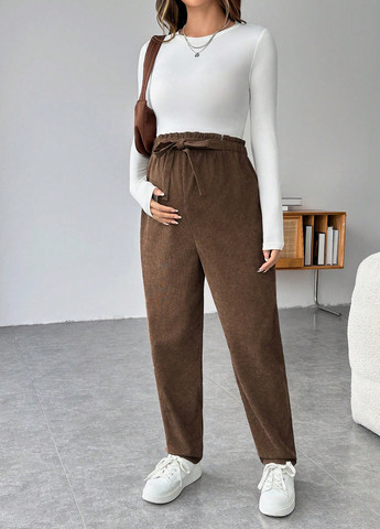 Брюки для беременных – коллекция осень/зима. Эти брюки имеют сверхвысокий пояс и затягивающийся шнурок. Они включают карманы и пояс-бумажный пакет. Ткань не тянется. Классический крой.