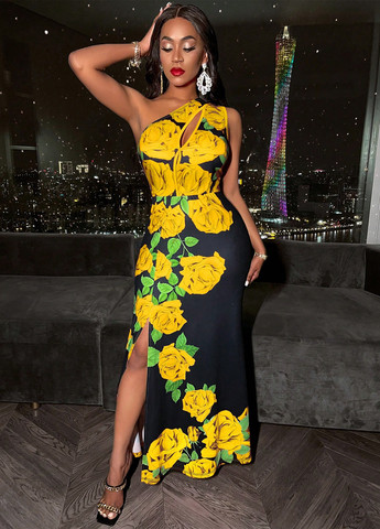 Материал Полиэстер / Цвет Черный / Фасон На одно плечо / Длина изделия Макси / Стиль Вечерний