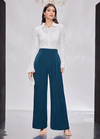 Цвет Синий / Материал Полиэстер / Фасон Палаццо / Высота посадки Высокая талия / Узор Однотонный