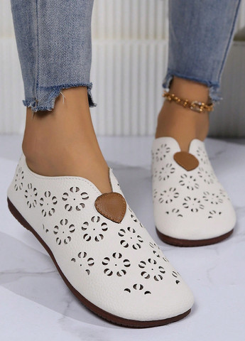 Цвет Молочный / Состав верха Искусственная кожа, Полиуретан / Застежка Без застежки / Декор Перфорация