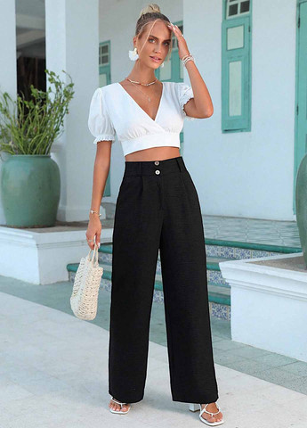 Цвет Черный / Материал Вискоза / Фасон Прямые / Высота посадки Высокая талия / Узор Однотонный