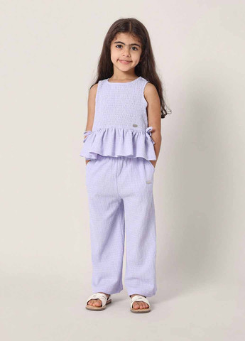 Летний комплект для девочек SUMWON. Этот лёгкий летний комплект состоит из майки без рукавов и широких брюк. Верх с круглым вырезом. Брюки изготовлены из полиэстера и имеют эластичный пояс.