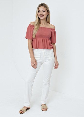 Цвет Коралловый / Материал Полиэстер / Узор Однотонный / Декор Волан / Стиль Кэжуал
