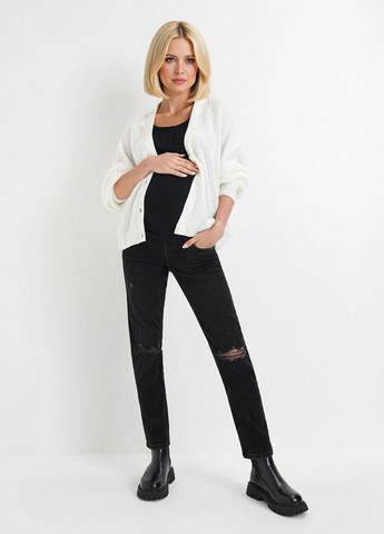 Цвет Черный / Фасон Прямые / Высота посадки Средняя талия / Декор Рваный / Сезонность Демисезон
