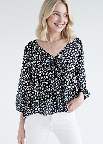 Цвет Черно-белый / Стиль Кэжуал / Узор Цветочный / Фасон рукава Вшитый