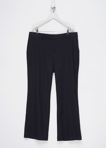 Брюки однотонные, прямые, на подкладке, застежка на молнии, пуговице и крючках, сзади два прорезных кармана, два боковых кармана с отрезным бочком. На размер 12 – полуобхват пояса – 46 см, полуобхват бедер – 58 см, длина по внутреннему шву – 77 см, длина по боковому шву – 99 см.