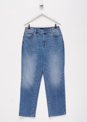 Брюки однотонные, прямые, средняя талия, застежка на молнии и пуговицах, сзади два прорезных кармана, два боковых кармана с отрезным бочком. На размер 12 – полуобхват пояса – 47 см, полуобхват бедер – 58 см, длина по внутреннему шву – 78 см, длина по боковому шву – 102 см, ширина по низу (полуобхват) – 22 см. Повреждена тканевая бирка.