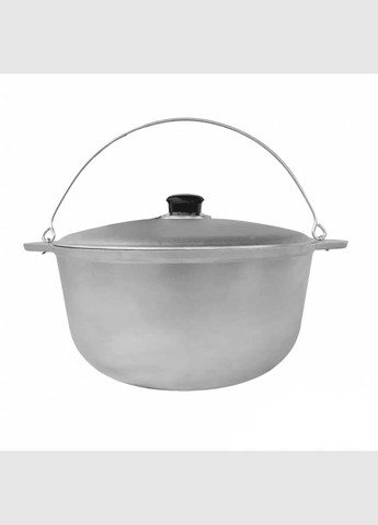Котел с алюминиевой крышкой и дужкой, объемом 16,5 литров, изготовлен из алюминиевого сплава. Имеет круглую форму, диаметр – 360 мм, высота стенок 215 мм, толщина стенок 3,5 мм, толщина дна 4,5 мм. Вес нетто 3 кг. Применяется для приготовления пищи в домашних и производных. Котел туристический из пищевого алюминия на 16,5 л. Материал, из которого производится котел, имеет высокую теплопроводность, что обеспечивает равномерный нагрев и быстрое приготовление пищи на открытом огне. Конструкция котла позволяет перевозить его в рюкзаке туриста и в багажнике автомобиля при этом он не деформируется. Реальный объем котла может отличаться от указанного на заводе на 1,5-2л в меньшую сторону!