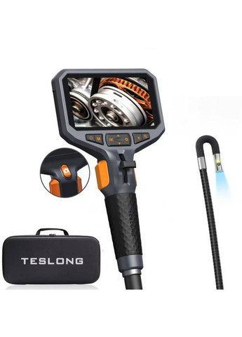 Видеоэндоскоп Teslong TD450S с управляемым поворотным зондом диаметром 8,5 миллиметра. 2 камеры на зонде! Угол поворота зонда 210 градусов, поворот возможен по двум направлениям. Эндоскоп Teslong TD450S имеет две камеры по 2Мп каждая, с разрешением 1080P, угол обзора обеих камер 70°, подсветка основной камеры 8 LED светодиодов, боковой 1 LED светодиод. Видеоэндоскоп оснащен трубчатым полужестким кабелем длиной 1 метр, который хорошо держит заданную форму, а также с его помощью можно проталкивать зонд под разными углами или в местах сильного загрязнения. Управление поворотом зонда производится с помощью джойстика, расположенного на ручке основного блока устройства. Для удобства рядом с джойстиком поворотного зонда находится кнопка регулировки подсветки камеры, а также кнопка фото/видео записи. Управляемый технический эндоскоп Teslong TD450S имеет цветной дисплей диагональю 4,5 дюймов, на котором расположены кнопки управления функциями устройства (режимы, настройки, просмотр фото/видео записей, поворот или отображение изображения из камеры, увеличение и прочее). А также на боковой части расположен порт для карты памяти MicroSD и вход USB для подзарядки. Питание устройства обеспечивает встроенная батарея 3000 мАч, чего достаточно примерно на 4 – 5 часа автономной работы. Датчик температуры – зонд имеет интеллектуальную систему с датчиком температуры. Если температура зонда с камерой слишком высока, на экране появляется уведомление. Если температура превышает 70°C то эндоскоп автоматически выключается. Основные особенности: Поворотный зонд с углом поворота 210° Две камеры на зонде (основная и боковая) Диаметр зонда 8,5мм. Длина зонда: 19,5 мм. Длина поворотной части: 37 мм. Подсветка фронтальной камеры – 8 светодиодов, боковой – 1 светодиод Угол обзора основной и боковой камер: 70° Фокусное расстояние: 15 – 100 мм. Длина кабеля: 1 метр Дисплей: 4,5 дюймов Батарея: 3000 мАч, 4 – 5 часа автономной работы Технические характеристики: Камера основная: 2 МП, боковая 2МП Разрешение видео: Full HD 1920*1080P Формат видеозаписи: MP4 Поддержка карт памяти MicroSD до 32 Гб Цифровое увеличение (ZOOM): есть Угол обзора обеих камер: 70 градусов Угол поворота зонда: 210 градусов Фокусное расстояние камеры: 15 – 100 мм Подсветка зонда: 8+1 LED светодиоды Дисплей: цветной LCD IPS 4,5 дюймов Батарея: 3000 mAh Длина кабеля: 1 метр Защита от влаги: IP67 Рабочая температура: 0 - 70°C Комплектация: Управляемый эндоскоп Teslong TD450S USB кабель Футляр для хранения Инструкция (eng)