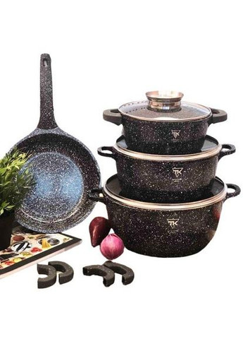 Набор посуды Top Kitchen TK00020 – идеальное решение для вашей кухни, сочетающей современный дизайн, высокое качество и функциональность. Этот комплект из 5 емкостей, включая сковородку, изготовлен из алюминия с долговечным мраморным покрытием.