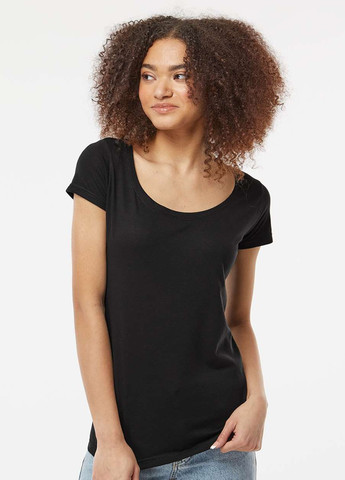 Однотонная футболка прямого кроя, с круглым вырезом горловины.