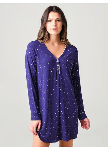 UGG ночная женская рубашка синего цвета со звездным принтом (002485). Рубашка с длинным рукавом и нагрудным карманом, застежка на перламутровые пуговицы с логотипом. Рубашка очень мягкая на ощупь и эластичная, приятная к телу. Это супермягкое платье для сна изготовлено из нашего шелковистого, легкого трикотажного трикотажа, с подолом в форме рубашки, застежкой на пуговицы спереди и вырезом горловины из ленты-хенли. Нагрудный карман с контрастной окантовкой. Логотип UGG на пуговицах. Тканой флажок UGG на левом боковом шве. Материал джерси, состав модал. Модал (Modal) представляет собой модернизированное вискозное прядильное волокно, производящееся из целлюлозы, получаемой из древесины и получающейся в результате вискозного процесса. Разрывная прочность его выше, чем у вискозы, а по гигроскопичности он превосходит хлопок (почти в 1,5 раза). Страна бренда – Австралия, страна производства – Китай.