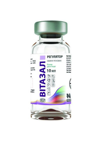 Витазал - это комбинированный препарат, обладающий тонизирующими свойствами, нормализует обменные и восстановительные процессы, стимулирует белковый, углеводный и жировой обмены, повышает резистентность организма к неблагоприятным факторам внешней среды, способствует росту и развитию животных. Бутафосфан — органическое соединение фосфора, которое влияет на процессы усвоения питательных веществ в организме, улучшает усвоение глюкозы, способствует стимуляции энергетического обмена, ускоряет процессы метаболизма, стимулируя АДФ-АТФ цикл, активизирует функции печени, повышает неспецифическую работу костной ткани и синтез протеинов. росту и развитию животных, восстановительным процессам в органах и тканях. Органические соединения фосфора не накапливаются в организме и не обладают побочными эффектами, присущими стимулирующим средствам неорганического фосфора. Витамин В12 стимулирует кроветворение, жировой обмен и обмен карбоновых кислот, участвует в формировании креатина (источники энергии мышечной ткани), биосинтезе ацетилхолина, положительно влияет на состояние нервной системы, нормализует процессы усвоения корма, способствует биосинтезу метионина. Цианокобаламин является коферментом в биосинтезе глюкозы из пропионата. Кроме того, он служит кофактором для ферментов, важных для синтеза жирных кислот, и важен для поддержания нормального кроветворения, защиты печени и поддержания мышечной ткани, здоровой кожи, мозга и метаболизма поджелудочной железы. Относится к классу водорастворимых витаминов группы В, синтезируемых микробиотической флорой в пищеварительной системе жвачных животных (ретикулорумен и толстый кишечник). В результате собственных потребностей микробов синтез обычно не производит достаточно, чтобы покрыть потребности всего организма жвачного животного. Выраженные дефициты возникают редко, даже в случае недостаточного поступления цианокобаламина. В клинических исследованиях наблюдалось различное влияние цианокобаламина и бутафосфана на метаболизм липидов крупного рогатого скота, включая снижение уровней в сыворотке крови, связанных с кетозом неэтерифицированных жирных кислот и β-гидроксимасляной кислоты. Бутафосфан быстро всасывается и выводится после введения всех целевых видов животных. После введения крупного рогатого скота бутафосфан распределяется во внесосудистом пространстве в течение нескольких минут и быстро выводится из организма в неизмененном виде. Период полувыведения составляет от 83 до 116 минут. В течение двенадцати часов после введения в среднем 77% исходного соединения обнаруживается в моче. В молоке обнаружены только следы бутафосфана. Метаболической деградации не обнаружено. Метаболизм цианокобаламина сложен и тесно связан с метаболизмом фолиевой и аскорбиновой кислот. Витамин B12 хранится в больших количествах в печени, другие места хранения включают почки, сердце, селезёнку и мозг. Период полураспада витамина В12 в тканях составляет 32 дня. У жвачных животных витамин B12 выделяется в основном с фекалиями и в меньших количествах с мочой. По степени воздействия на организм препарат относится к малоопасным веществам. Витазал применяют в комплексе терапевтических мероприятий крупного рогатого скота, лошадей, овцам, козам, свиньям, собакам и котам в случаях н