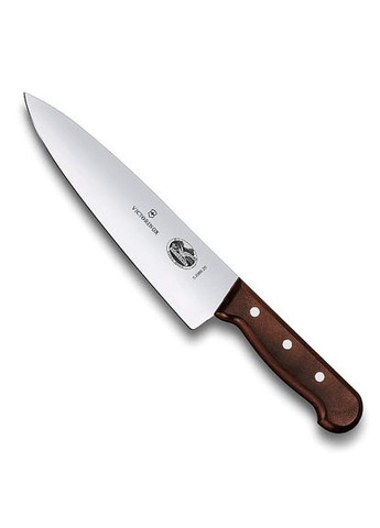 Отличный нож для мужских рук Victorinox SwissClassic 5.2060.20G. Этот нож отлично выполняет роль основного рабочего ножа шеф-повара. Идеален для нарезки, измельчения мяса, овощей и так далее. Особенностью этой модели является достаточно широкое лезвие, ширина которого составляет 5 см. Качественный и прекрасно сбалансированный нож. Благодаря хорошей эргономике рукояти не утомляет руку при работе. Назначение: шеф-нож Материал клинка: Сталь прокатная, молибден-ванадиевая X50 Cr Mo V 15 Твердость по шкале Роквелла (Hrc): 55-56 Тип режущей кромки лезвия: Двухсторонняя симметричная Материал рукояти: палисандровое дерево Угол. Длина клинка (см): 20 Ширина клинка (см): 5 Цвет: палисандр Упаковка: поставляется в красивой подарочной коробке. Производство: Швейцария