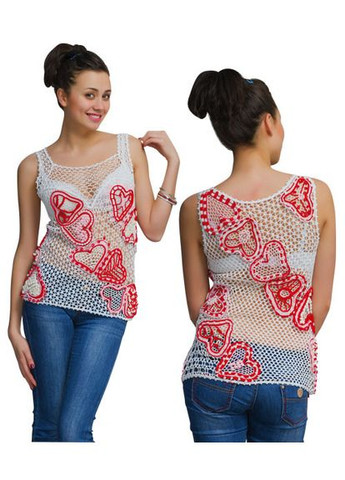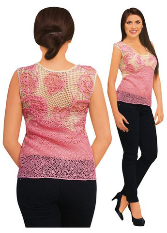 Блуза из плотных ярких мотивов, соединенных светлой сеткой салатового цвета. Размер — 42 — 46 (европейский S – М), нити хлопчатобумажные. Оригинальные мотивы для ирландского кружева из журнала «Дуплет» соединены очень красивой сеткой, имитирующей коклюшечные (итальянские) кружева. Это делает топ изящным, похожим морозные узоры на окнах. Идеальная ручная работа. Блуза выполнена из тонкой хлопчатобумажной пряжи очень тонким крючком с соблюдением всех технологических норм. Благодаря этому при стирке не линяет, не теряет форму и сохраняет идеальный вид .