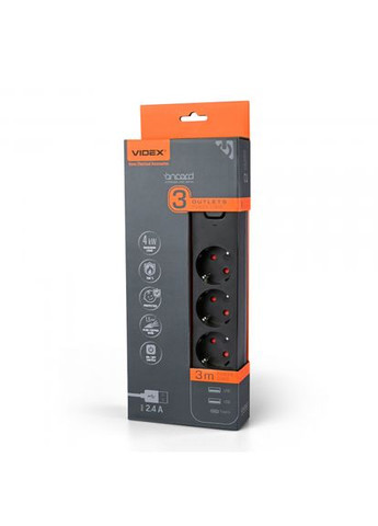 СЕТЕЧНЫЙ удлинитель VIDEX ONCORD - современное устройство для дома и офиса предназначено для повседневного использования. Соединяет 3 розетки переменного тока с заземлением (тип EU) и зарядное устройство с USB портами, а именно 2xUSB-A и 1xUSB-C, что позволяет заряжать ваши гаджеты подключив только ваш USB кабель. Выглядит стильно и современно в любом интерьере, а главное надежный и безопасный. Корпус изготовлен из огнестойкого (750°C) пластика – полипропилена (PP), а контакты сделаны из меди и латуни с никелевым покрытием. Трехжильный кабель изготовлен из высококачественной меди и покрыт толстым PVC слоем для защиты от повреждения, длина составляет 3м. Удлинитель также имеет защиту от детей, которая предусматривает дополнительные защитные шторки в гнезде розеток переменного тока. Гарантия составляет – 2 года. Напряжение, которое могут выдавать USB выходы: - 1-USB - DC 5В, 2.4А; - 2-USB - DC 5В, 2.4А; - USB-С - DC 5В, 2.4А. Общая выходная мощность при одновременном использовании всех портов USB и USB-C – составляет DC 5В, 2.4А. Назначение и применение изделия Изделие предназначено для одновременной зарядки мобильных устройств и подключения устройств переменного тока к розетке. Функциональные характеристики Изделие можно использовать только в закрытых помещениях. Защита от воды и пыли не предусмотрена. Внимание! - Изделие можно использовать только в сети, отвечающей энергетическим требованиям и стандартам качества, установленным законодательством. - Не соединяйте два или более блока последовательно. - Не разбирайте розетку, шнур и вилку. . Существует риск поражения электрическим током. Не накрывайте изделие во время работы. Не превышайте максимальную нагрузку. Используйте изделие только в сухой, электробезопасной среде.