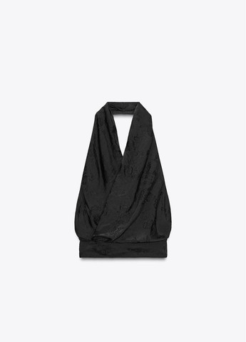 ZARA WOMAN COLLECTION Топ с перекрестной горловиной халтер. Открытая спина. Жаккардовая ткань с цветочным рисунком. Застежка на завязках из той же ткани.