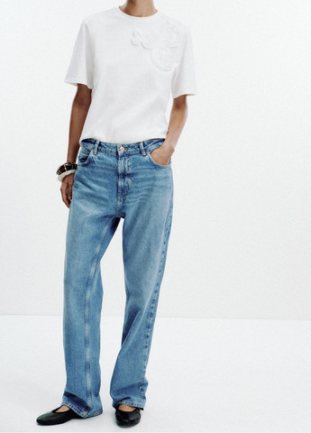MID WEIGHT - REGULAR FIT - КРУГЛЫЙ ВЫРЕЗ - СТАНДАРТНАЯ ДЛИНА - КОРОТКИЕ РУКАВА Футболка из хлопковой пряжи. Круглый вырез и короткие рукава. Объемные цветы спереди.