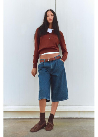 Zara – испанский бренд, под которым выпускается мужская, женская и детская одежда. Особенностью одежды Zara является дизайнерский подход к сохранению демократических цен. Этот бренд принадлежит к самым продаваемым во всем мире. ОПИСАНИЕ: Шорты с высокой посадкой. Защипы, плетеный ремень. Передние карманы. Застежка-молния, внутренняя пуговица и крючок.