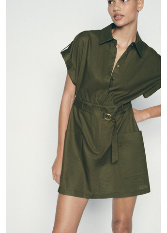 Zara – испанский бренд, под которым выпускается мужская, женская и детская одежда. Особенностью одежды Zara является дизайнерский подход к сохранению демократических цен. Этот бренд принадлежит к самым продаваемым во всем мире. ОПИСАНИЕ: Платье из смешанного льна с воротником и короткими рукавами с отворотами. Передние накладные карманы, подкладка. Застежка-молния и пуговицы.