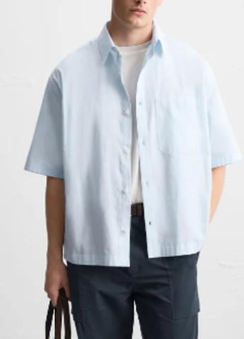 Рубашка свободного кроя из бархатистого хлопкового поплина. Воротник с лацканами и короткие рукава. Накладной карман на груди. Планка на пуговицах спереди.