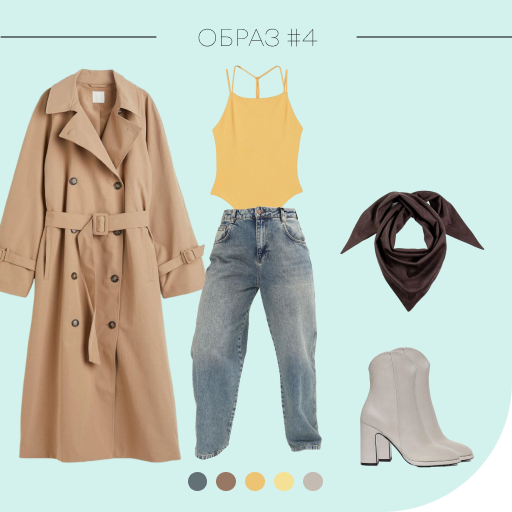 Если ты планировала покупать ботильоны на более холодную осень, то в теплую погоду можно носить эту капсулу с базовыми белыми (или даже цветными) кроссовками. А в холода – заменить тренч на дубленку-авиатор или утепленную куртку.