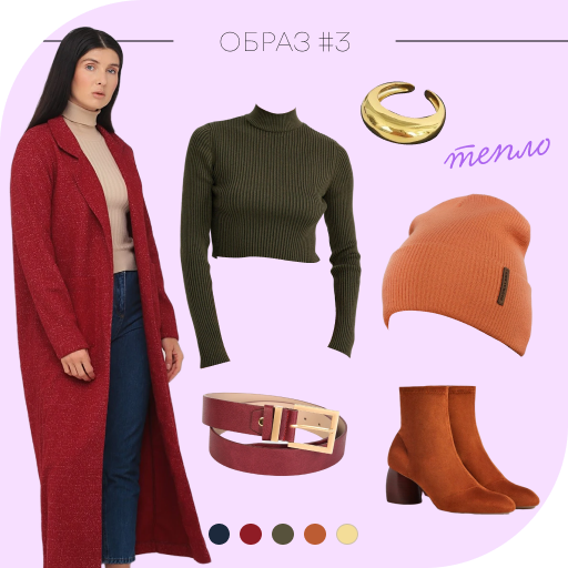 Подборку использованных в комплекте вещей можно посмотреть по ссылке ниже.