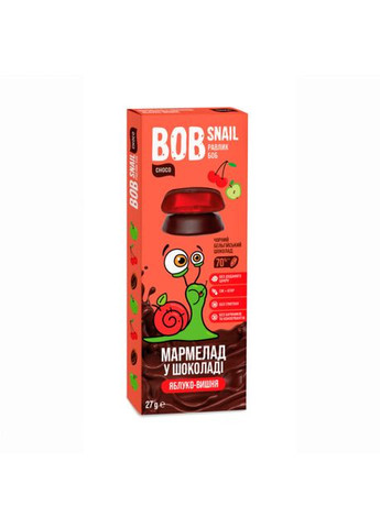 Натуральный мармелад Bob Snail – лучшие украинские конфеты из фруктовых соков и агар-агара. Состав: мармелад (77%): яблочный сок концентрированный 64.1%, сок вишневый концентрированный 10.7%, агар 2.2%; черный шоколад (23%): какао тертое, пищевые волокна (олигофруктоза), какао-масло, какао-порошок с пониженным содержанием жира, МОЛОЧНЫЙ жир, подсолнечный лецитин, натуральный ароматизатор ваниль, подсластитель: экстракт стевии. *Минимальное содержание какао-продуктов в шоколаде - 70%. Мармелад – это идеальный вкус для тех, кто ищет полезные сладости без добавленного сахара.