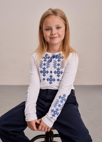 Вышиванка для девочки "Голубка" MEREZHKA белая узор-орнамент бязь
