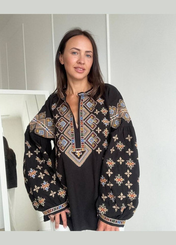 Женская вышиванка - это традиционная украинская рубашка, изготовленая из льняной ткани (80% лен, 20% полиэстер), которая имеет вышивку этничного мотива. Модель свободного прямого кроя, с длинными рукавами. Льняные вышиванки очень популярны среди украинских женщин и могут использоваться как национальный атрибут, а также как элемент современного стиля. Они могут иметь разные вариации фасонов и декора, что делает их универсальными для разных случаев - от повседневной носки до праздничных мероприятий.