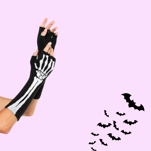 Цветовые акценты: Хэллоуинские колготки, перчатки с принтом костей, шарф или бафф с черепом. Это отличный способ добавить немного «ужаса» в твой привычный образ.