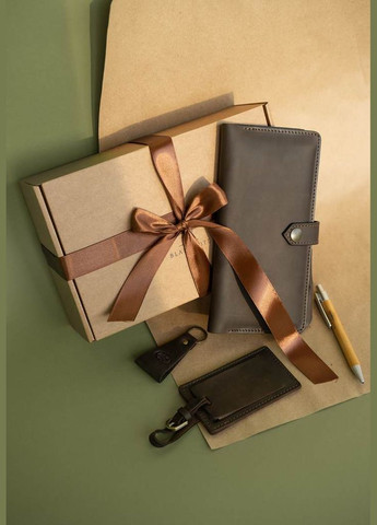 Как часто при выборе подарка, мы бросаемся из магазина в магазин, прерываем тонны информации на сайтах в поисках достойного подарка для друга, коллеги или члена семьи. Чтобы сделать вашу жизнь проще, а выбор подарков не утомительным, мастерская BlankNote создала подарочные наборы по самым необходимым предметам в повседневной жизни. Мы подобрали изделия, которые дополняют друг друга по функционалу, стилю, а также цветовой гамме. В набор аксессуаров "Дублин" входит: Трэвел-кейс 4.0, Графит - Незаменимый аксессуар для путешествий, сохранит за собой все важные документы, посадочные билеты и другие важные мелочи на время путешествия; и Портмоне 4.2, Графит - стильный и компактный портмоне с небольшим отделением для монет; Кард-кейс 4.0, Графит - Удобный кард-кейс для хранения документов. Имеет 2 кармашка с окошком и 1 обычный; Брелок. Верный спутник для ваших ключей. Дизайнерская открытка - для важных слов. Подарочный набор упакован в крафтовую коробку и бережно перевязан атласной лентой. Все, что вам предстоит сделать, это заказать и презентовать отличный подарок - набор аксессуаров "Дублин". Меньше времени на раздумья, что подарить, больше на приятные приготовления! Габариты: трэвел-кейс (13x22 см), портмоне (11х9 см), кард-кейс (10х7,5 см), брелок (4х4 см), открытка (10х15 см) Фурнитура и комплектация может быть изменена производителем
