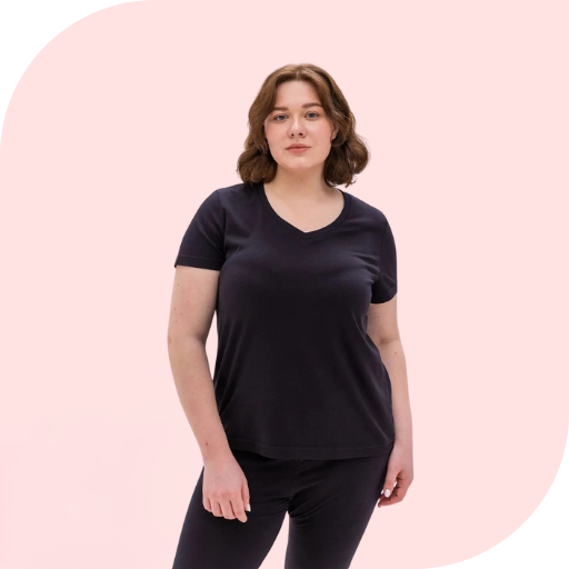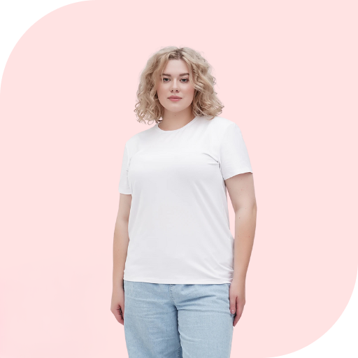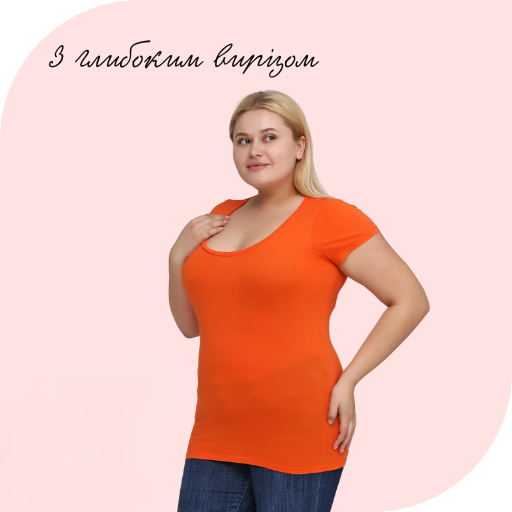 Футболки для женщин Плюс сайз лучше выбирать однотонные, хлопчатобумажные, полуприлегающие и матовые (без люрексной нити, меланжа и т.п.). Ткань может быть как плотная, так и более мягкая, но важно, чтобы футболка не просвечивалась. Важно также обратить внимание на рукав, его идеальная длина – чуть выше локтя. Он должен быть немного свободен, не в облипку. Короткий обтягивающий рукав лишь подчеркнет широкую часть плеча, которая, как правило, часто бывает у женщин с размером одежды более 48-50.