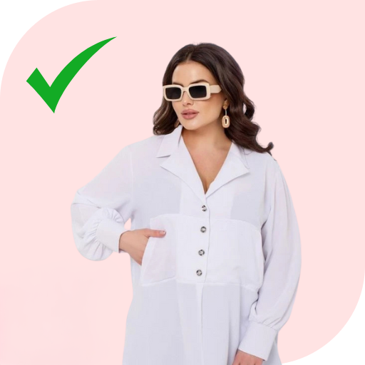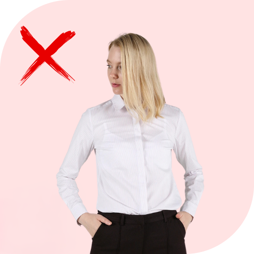Девушкам больших размеров лучше отказаться от блузок в пользу обычной рубашки. Она должна быть свободного покроя, хорошо держать форму, хорошо сидеть на груди, чтобы не создавалось ощущение, что на пошив рубашки не хватило ткани. Лучше выбрать классический крой рубашки без утечек на спине и лишних декоративных элементов. Осторожно следует относиться и к карманам на груди, поскольку они зрительно увеличивают бюст.