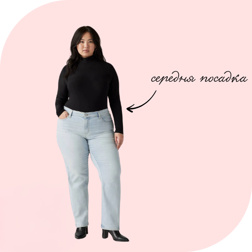 Правильная посадка джинсов Plus Size – высокая, или средняя. Хорошо садится на фигуру с животиком и выраженными бедрами классическая прямая модель Levi`s 501 и подобные ей.