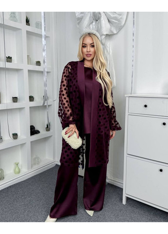 Цвет Темно-фиолетовый / Фасон С рубашкой, Тройка, Брючный / Стиль Праздничный, Коктейльный, Повседневный, Вечерний, Деловой, Кэжуал / Узор Горошек / Материал Атлас