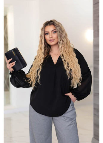 Перед заказом ознакомьтесь с замерами Материал: софт + шифон (рукава) Размерная сетка 48–50 Объем груди: 127 см Объем бедер: 133 см Длина от плеча: 75 см Длина рукава: 77 см 52–54 Объем груди: 135 см Объем бедер: 141 см Длина от плеча: 77 см Длина рукава: 77 см 56–58 Объем груди: 143 см Объем бедер: 149 см Длина изделия: 79 см Длина рукава: 78 см 60–62 Объем груди: 151 см Объем бедер: 157 см Длина изделия: 82 см Длина рукава: 78 см Описание товара Невероятно легкая и приятная для тела женская блузка свободного кроя, изготовленная из нежного софта и воздушного шифона на рукавах. Комфортная, элегантная и универсальная подходит как для повседневных образов, так и для стильных вечерних сочетаний. Мягко садится по фигуре, красиво драпируется и обеспечивает свободу движений. Идеальный выбор для тех, кто ценит комфорт и изысканность каждой детали.