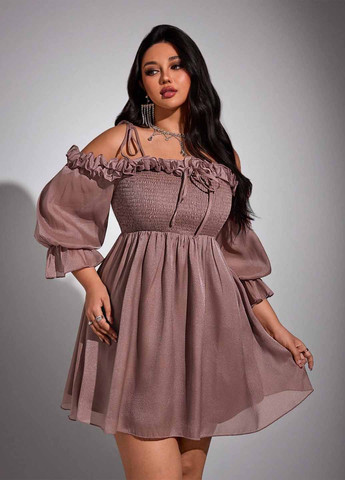 Материал Полиэстер / Цвет Розово-коричневый / Фасон Клеш, С открытыми плечами / Длина изделия Мини / Стиль Праздничный, Кэжуал