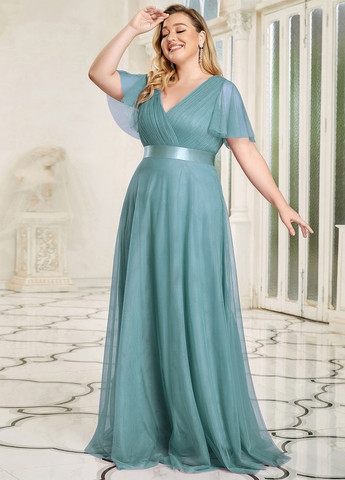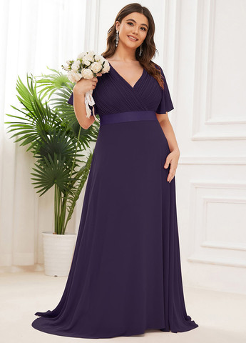 EVER-PRETTY Plus. Платье из шифона с рукавами-крылышками. Это платье имеет стандартный крой и V-образный вырез. Оно застегивается на молнию и имеет рукава-воланы.