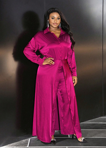 Комбинезон: Slayr Plus Size Satin Jumpsuit. Этот атласный комбинезон предлагает изысканный вид для деловой или офисной одежды. Он имеет стандартный крой, застежку на пуговицы спереди и спущенные рукава. Ткань слегка тянется для комфорта. Он имеет высокую талию и воротник.