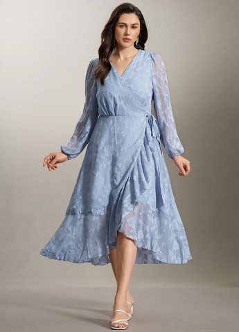 Материал Полиэстер / Цвет Светло-синий / Фасон На запах / Длина изделия Миди и ниже колена / Стиль Праздничный, Кэжуал