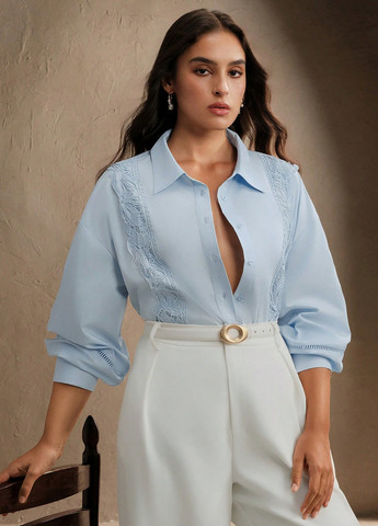 Цвет Голубой / Стиль Праздничный, Кэжуал / Узор Однотонный / Фасон рукава Вшитый