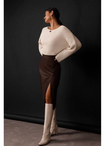Цвет Темно-коричневый / Высота посадки Высокая талия / Длина изделия Миди и ниже колена / Материал Экокожа