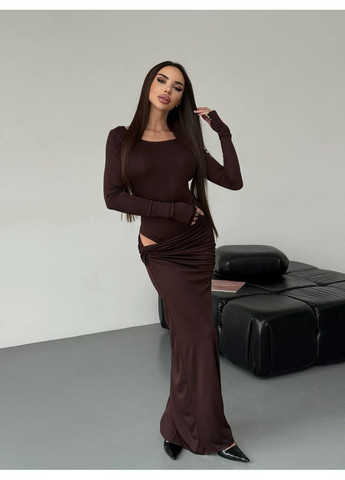 Цвет Коричневый / Фасон Юбочный / Стиль Праздничный, Коктейльный, Вечерний / Узор Однотонный / Материал Трикотаж