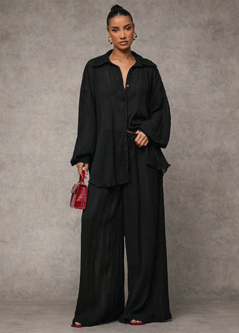 Цвет Черный / Материал Полиэстер / Фасон Палаццо / Высота посадки Средняя талия / Узор Однотонный