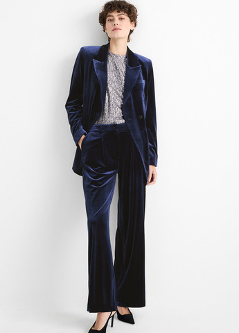 Цвет Темно-синий / Материал Полиэстер, Велюр / Фасон Палаццо / Высота посадки Средняя талия / Узор Однотонный