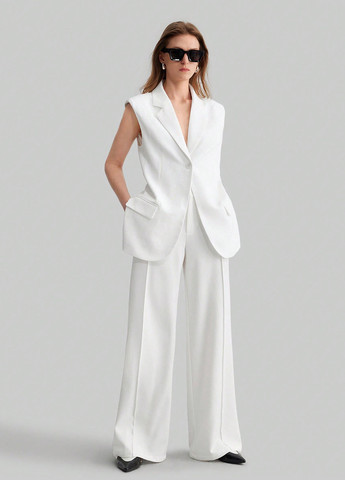 Цвет Белый / Материал Полиэстер / Фасон Прямые / Высота посадки Высокая талия / Узор Однотонный